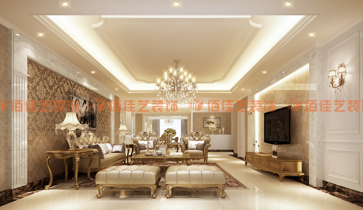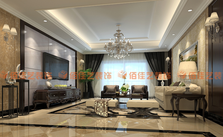 东方巴黎132平米美式轻奢风三室两厅装修案例