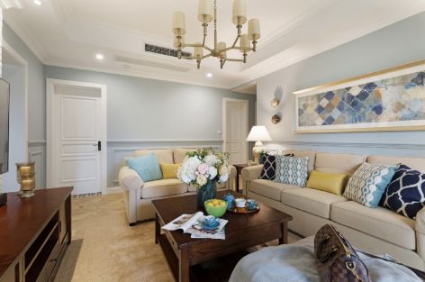 信海花园美式风格126平米三居室装修案例风效果图