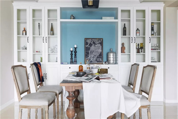 中间留空餐边柜就有了收纳功能,哪怕暂时没有要放置的物品,也可以作为展示台,摆放各种装饰品,增添餐厅空间的优雅气氛。