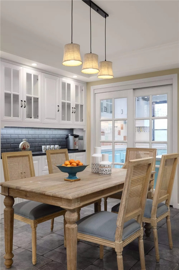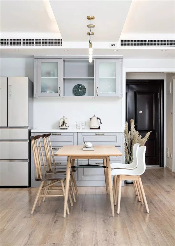 厨房空间有限,想要大一些的橱柜,在餐厅区域允许的情况下,可以考虑把部分电器和餐边柜结合起来,整体空间更加丰富实用。