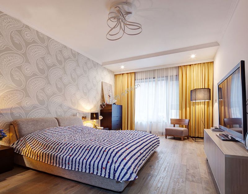 新中式风120平三居室卧室壁纸装修设计图