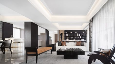 新中式风120平三居室客厅吊顶装修设计图