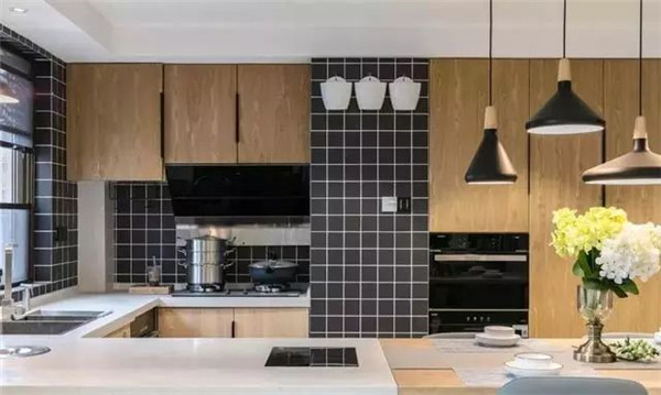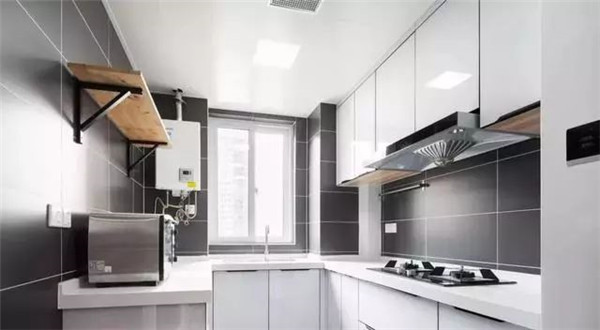 通过木色来提升厨房的温馨感,白色带来明亮感,灰色让厨房变得更有格调感。