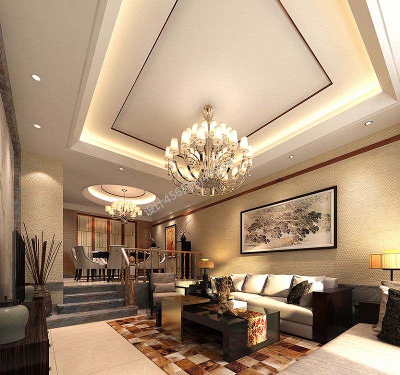 国贸蓝海混搭风格130平米三居室装修案例风效果图