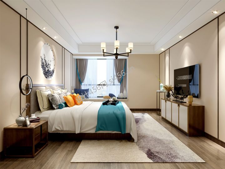 金永昌家园新中式风格123平米三居室装修案例风效果图
