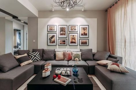 现代风格119平米三居室客厅窗帘装修效果图