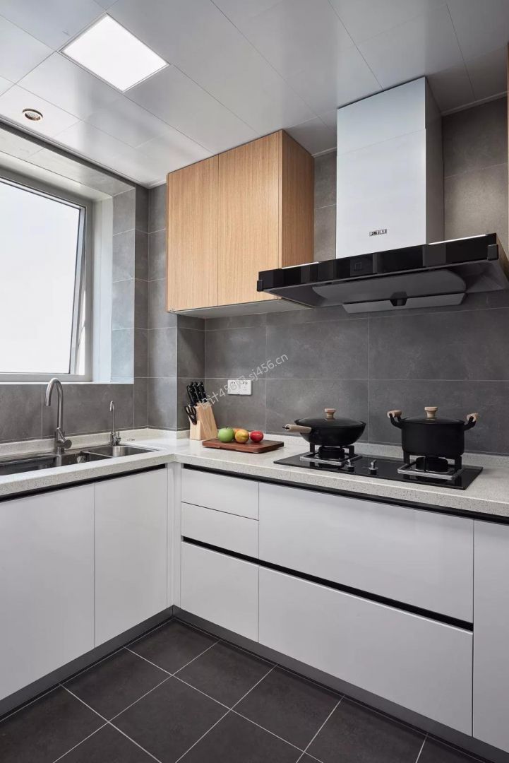 现代风格119平米三居室厨房橱柜装修效果图