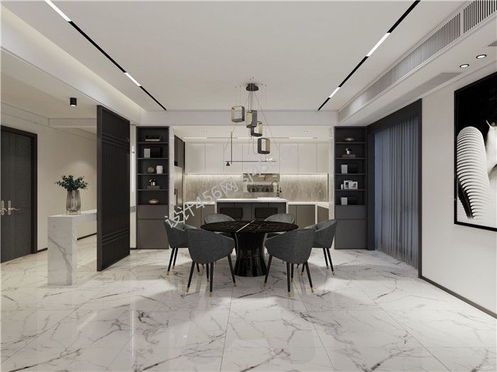 龙湖春江郦城现代风格136平米三居室装修案例风效果图
