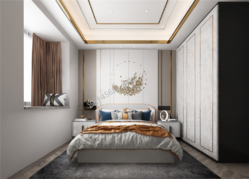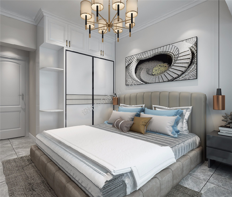 112平轻奢风格三居室卧室背景墙装修设计效果图