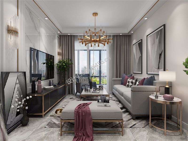 冠宏花园轻奢风格123平米三居室装修案例风效果图