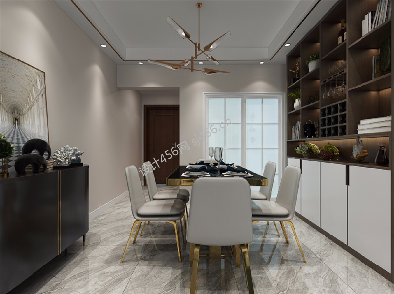 112平轻奢风格三居室餐厅餐桌装修设计效果图