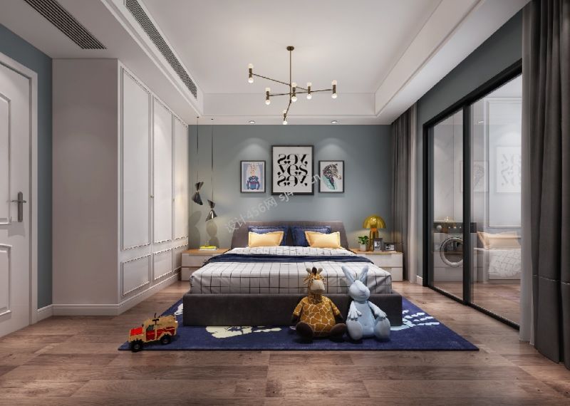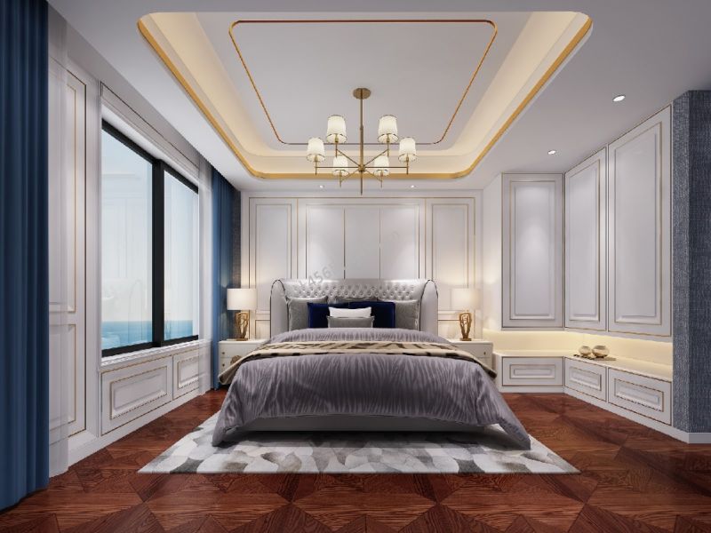 121平轻奢风格三居室卧室背景墙装修设计效果图