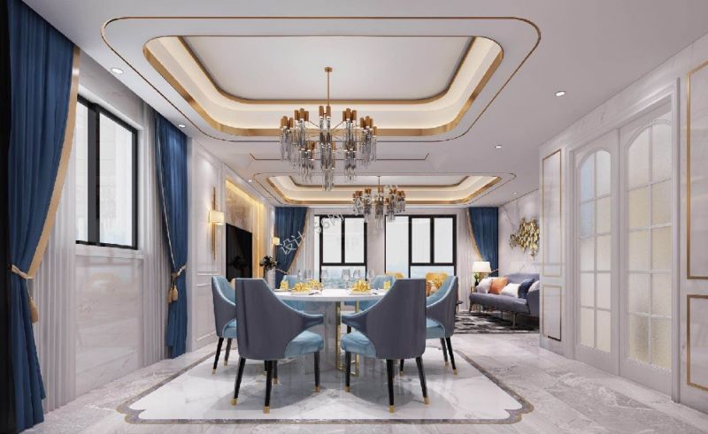 121平轻奢风格三居室客厅吊顶装修设计效果图