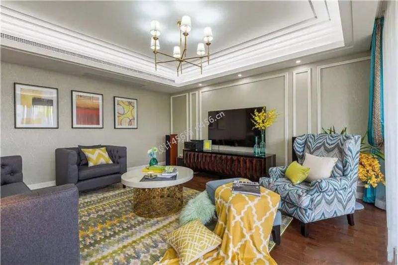 142平米美式风格三居室客厅电视背景墙装修效果图