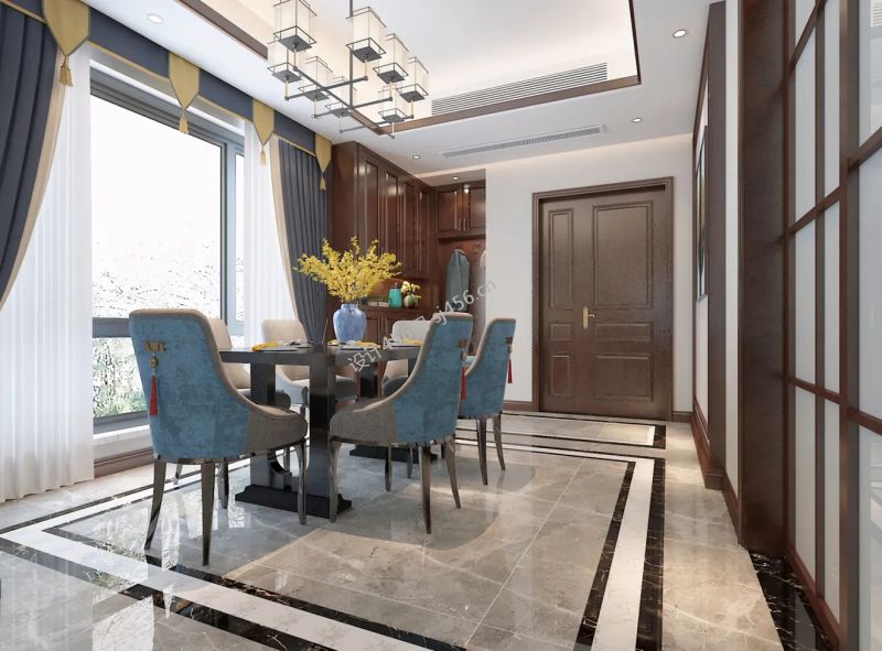 旭日海湾新中式风格138平米三居室装修案例风效果图
