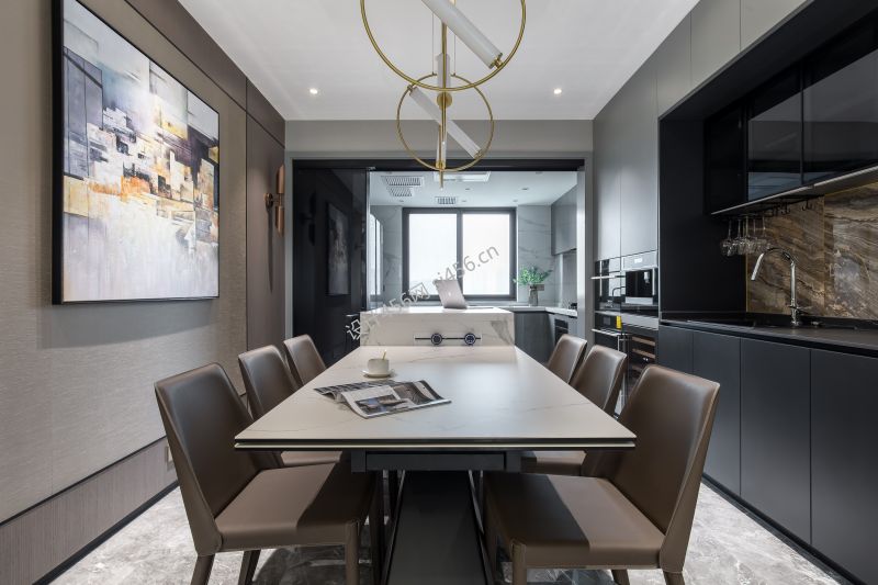 150平简约厨房岛台四居装修效果图