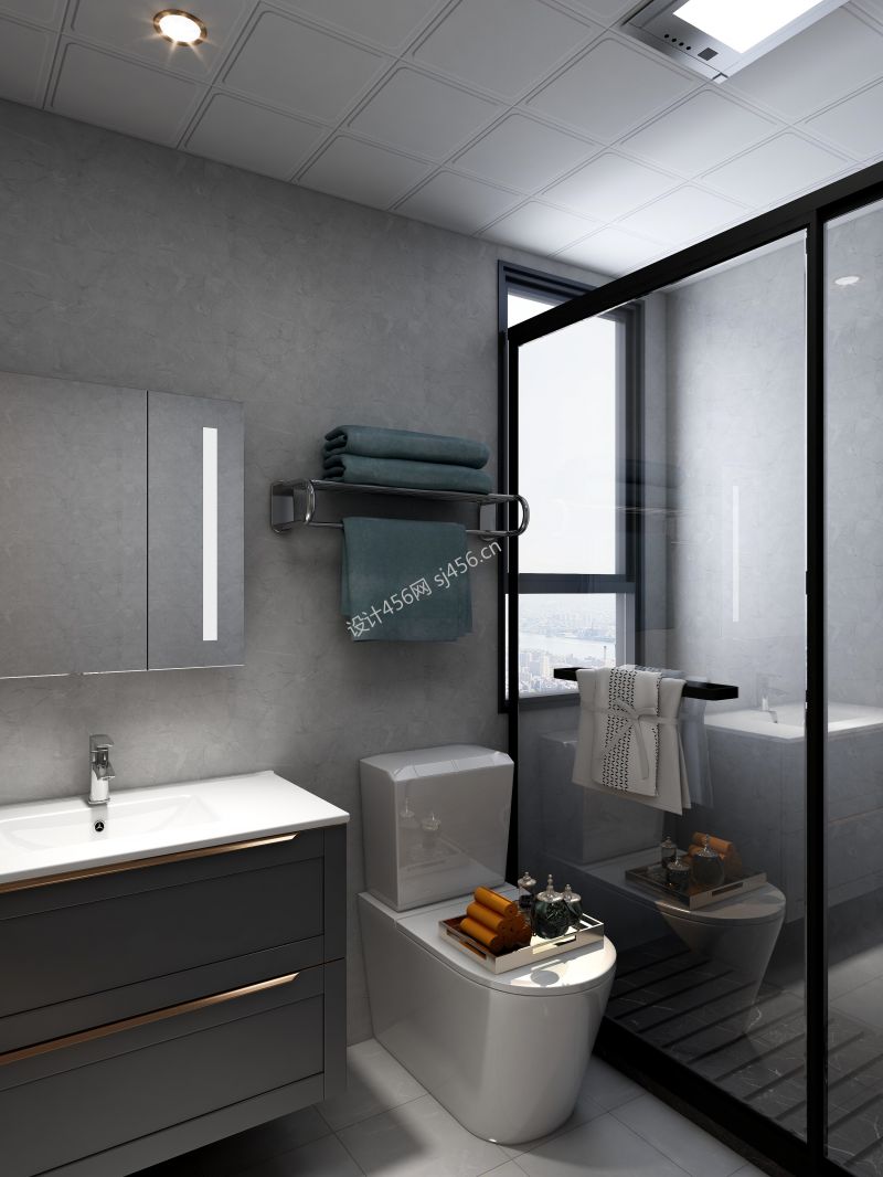 128平新中式卫生间三居室装修效果图