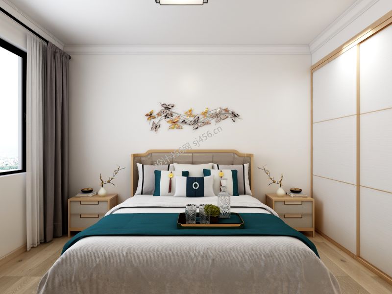 128平新中式卧室三居室装修效果图