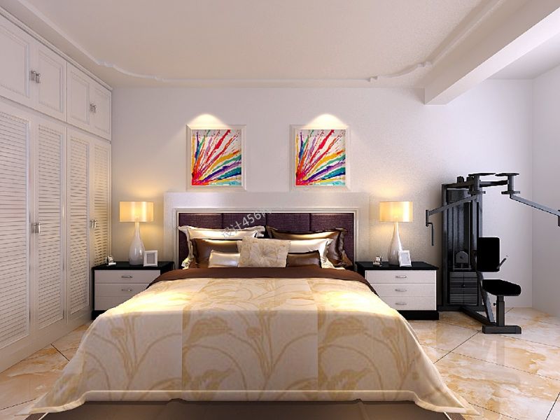 105平米现代简约卧室吊顶二居装修效果图