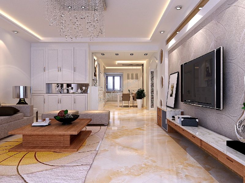 105平米现代简约客厅吊顶二居装修效果图