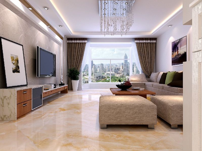 105平米现代简约客厅二居装修效果图