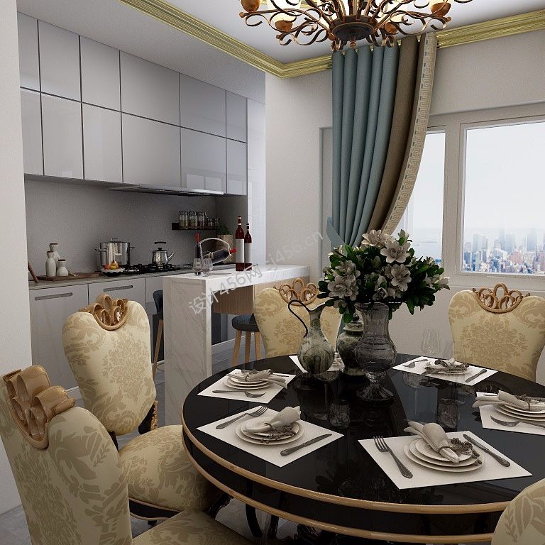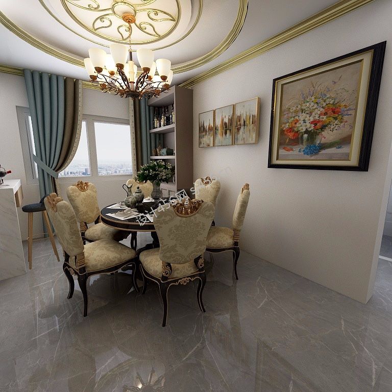 120平米欧式豪华餐厅吊顶三居装修效果图