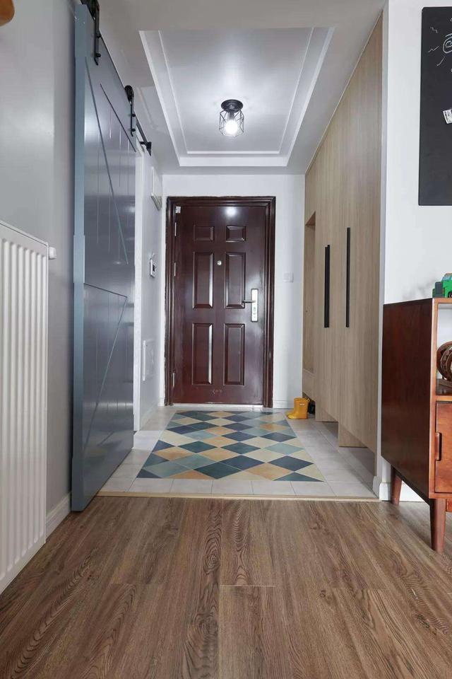 2.可以在玄关处使用地砖,用瓷砖与木地板拼接,出来的效果就像上面这张照片一样,还算是不错。