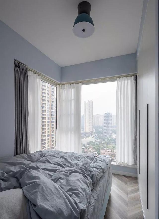 次卧作为儿童房,浅蓝色的墙面和蓝色的床头靠背都体现了孩童的天真浪漫;