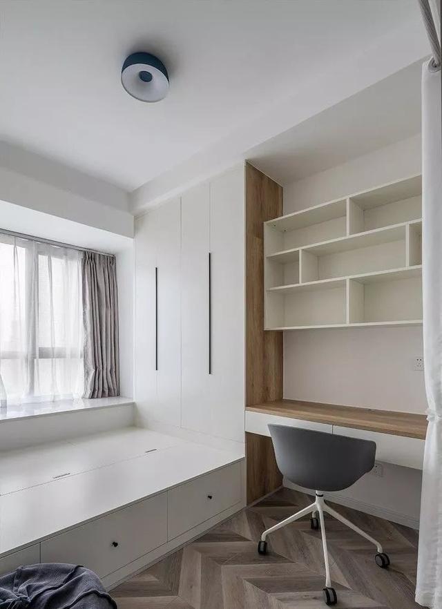 最小的房间作为一个书房兼客房的功能,所以榻榻米就是最合适的方式,相当于储物间、客房、书房三合一;
