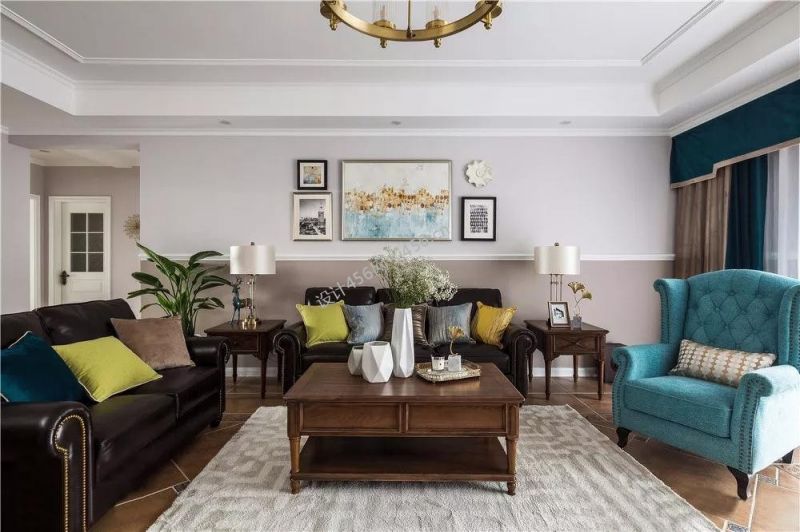 绿地商务城120平三居室美式经典风格装修案例风效果图