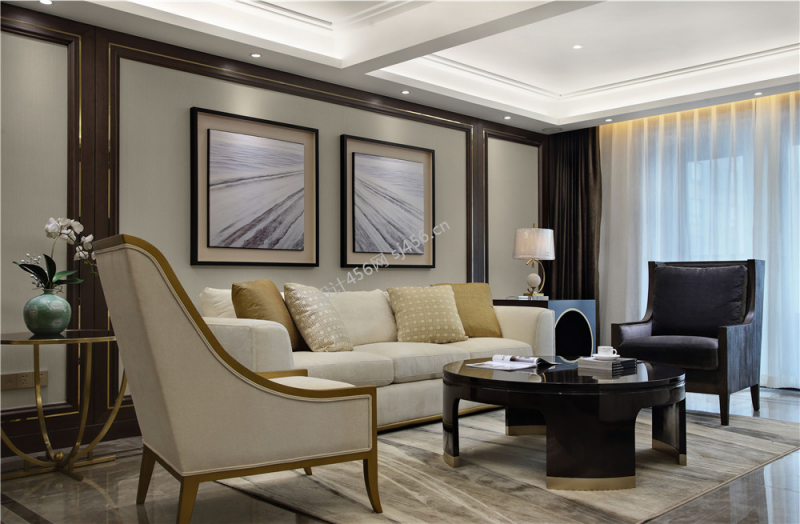 绿地商务城120平三居室美式经典风格装修案例风效果图