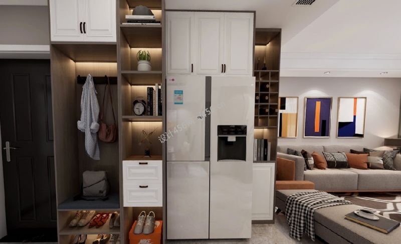 110平现代简约玄关柜三居装修效果图