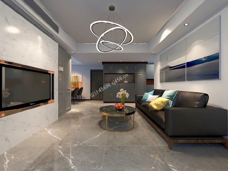 瑞凯国际城90平现代简约二居装修案例风效果图
