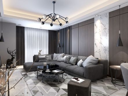 金洋紫金东郡100平现代简约三室装修案例风效果图