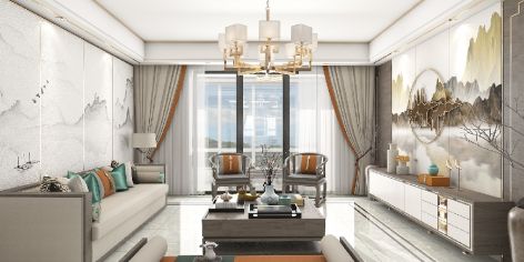 绿地之窗国际花都180平米中式四居室装修案例风效果图