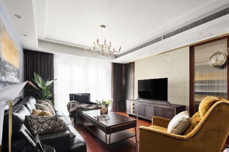 楚岳山庄108平现代简约三居室装修案例风效果图