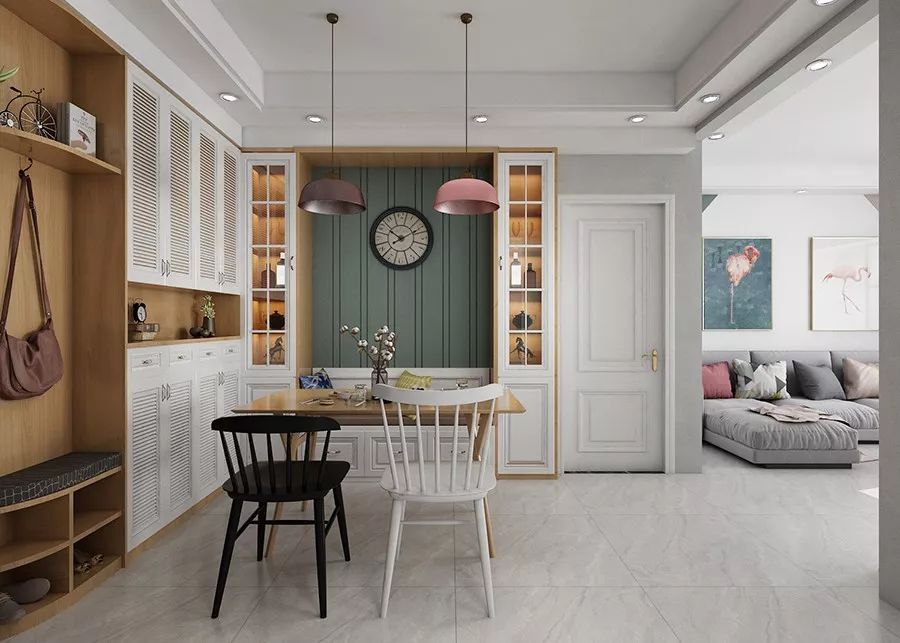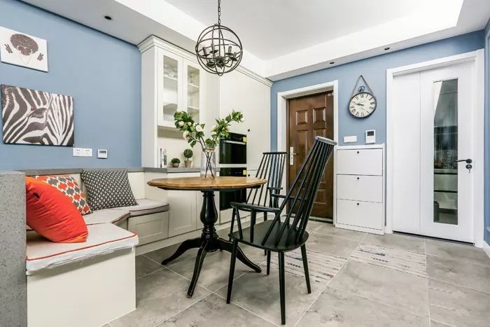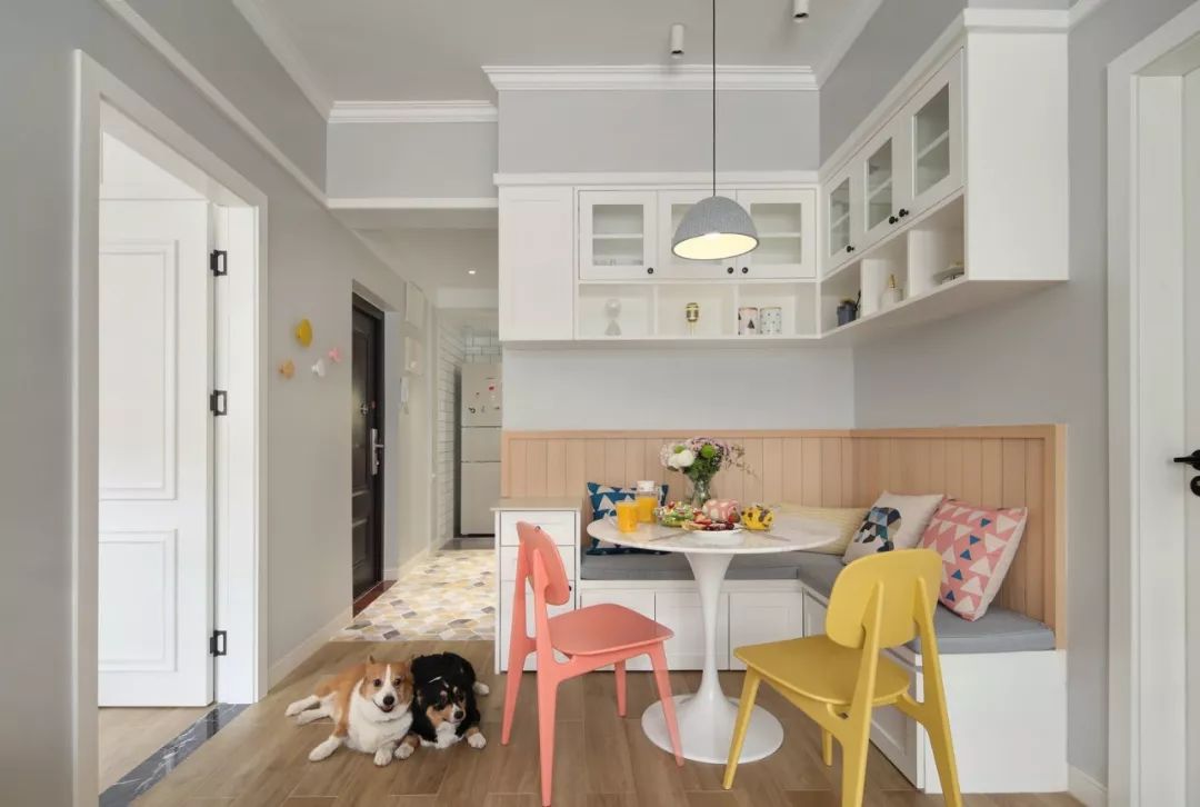 卡座对于小户型来说,设计收纳柜是很有必要的。一般会在下方设计收纳柜,提高储物空间,或者卡座和储物柜一体化设计,收纳效果更加明显。