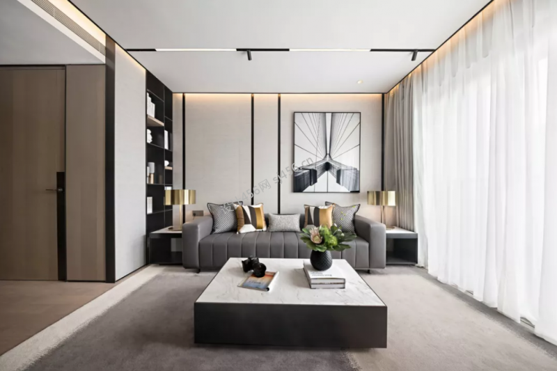 绿地世纪城116平米现代简约三居装修案例风效果图