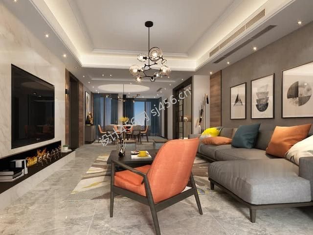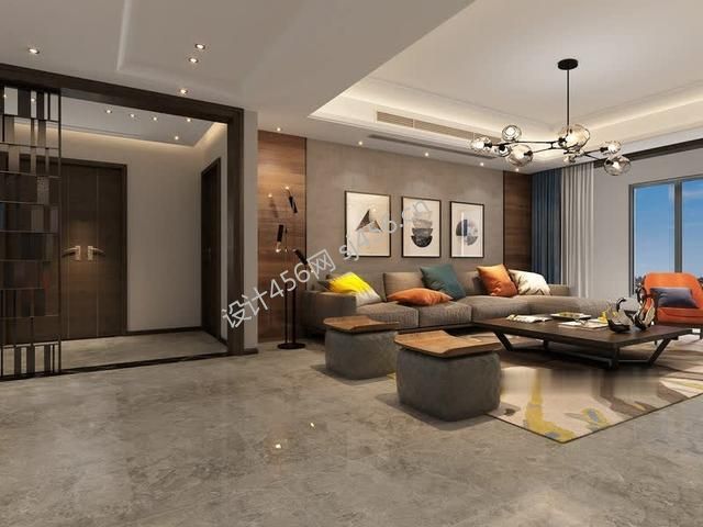 绿地世纪城116平米现代简约三居装修案例风效果图