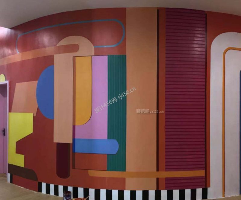 西美彩绘装饰有限公司 办公室现代简约设计墙绘图