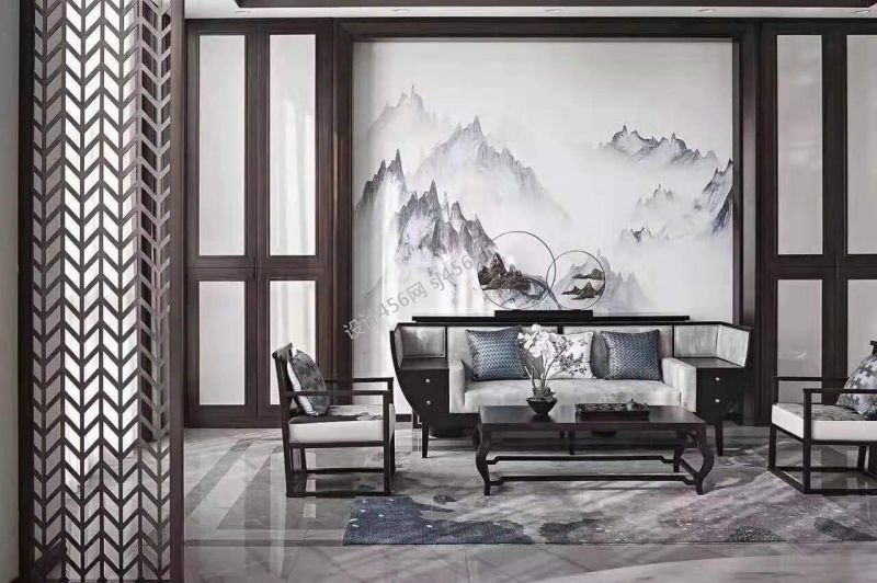 山水一品 80平米三居中式客厅沙发背景墙装修设计效果图
