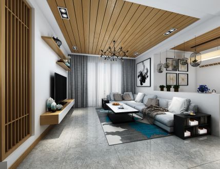 东城水岸新中式风格299平四居室装修效果图风效果图