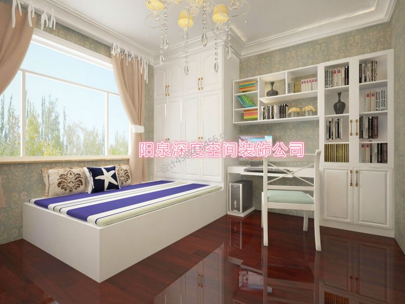 2020简单现代卧室图片 2020卧室书桌书柜组合效果图