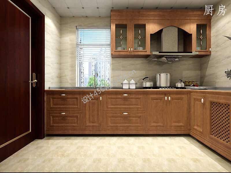 97平三居室美式风格厨房装修效果图片
