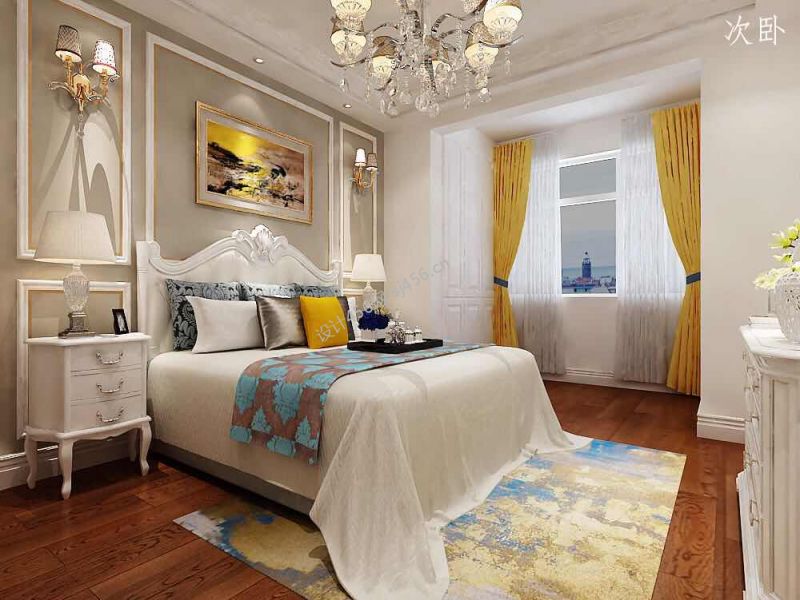 97平三居室美式风格卧室装修效果图片