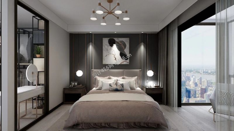 金领豪庭现代风格90平米二居室装修效果图案例风效果图