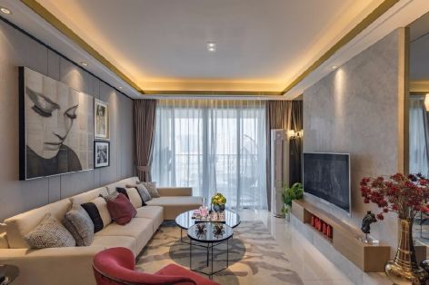 现代风格102平米三居室客厅沙发背景墙装修效果图