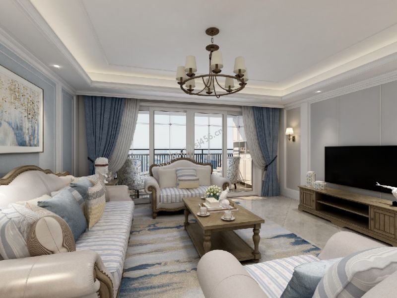 凤璟苑美式风格97平米二居装修效果图案例风效果图