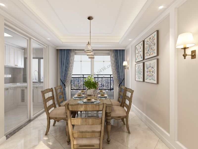 美式风格119平米餐厅玻璃推拉门装修效果图