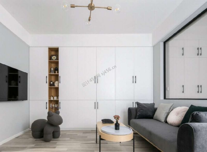 北欧风格58平米一居室客厅墙柜造型装修效果图